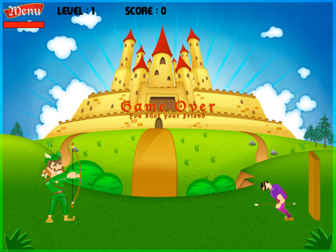 This amazing game is complex and easy at the same time. Simply aim the bow and the arrow towards the "apple" in the head of your "friend". Just don't kill him if you want to advance to the next level. To get more power swipe your finger from left to right across the screen.