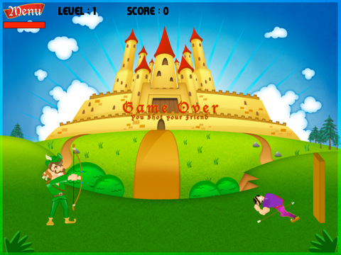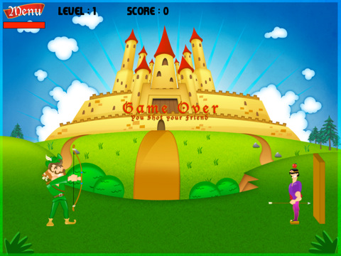 This amazing game is complex and easy at the same time. Simply aim the bow and the arrow towards the "apple" in the head of your "friend". Just don't kill him if you want to advance to the next level. To get more power swipe your finger from left to right across the screen.