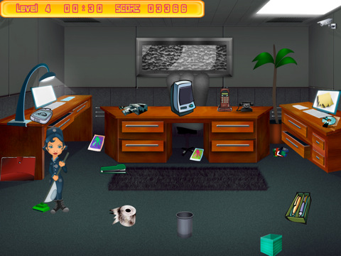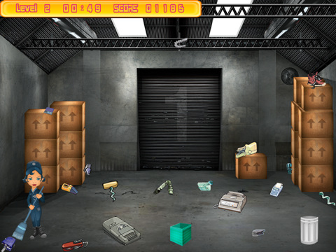 In order to tidy up you have to pick up everything that is on the floor. Just drag all the elements to the proper basket, either the carton box or to the trash depending on what it is.
